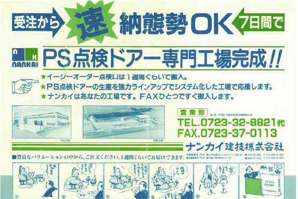 点検口ドア、パイプシャフトドアの専門工場として稼働。