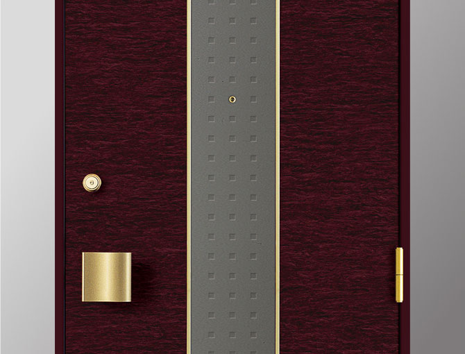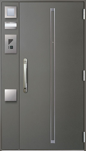 扉同色の袖パネルをプラスし、玄関をワイドに演出。エントランスユニットを組合わせ、玄関機能を充実させます。ルーテス玄関ドア各シリーズに対応します。