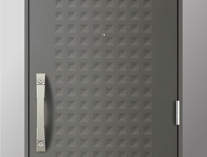2種類の鋼板を組み合わせモールを取り付けた重厚なイメージのデザイン。