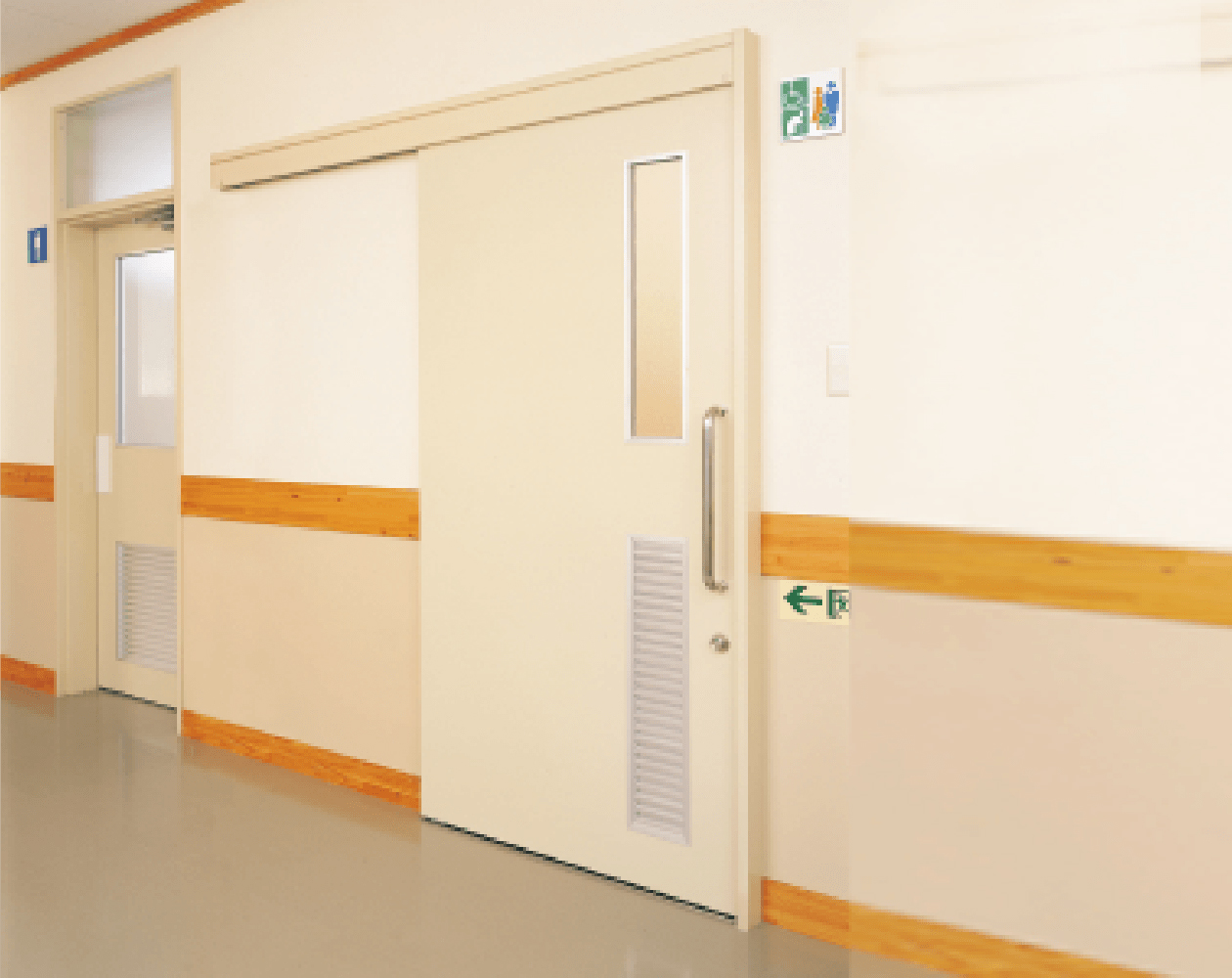 オフィスや工場、病院、マンションなど、幅広い用途にお使いいただけるほか、スペースを区切って使用する場合の仕切壁にも最適なドアです。